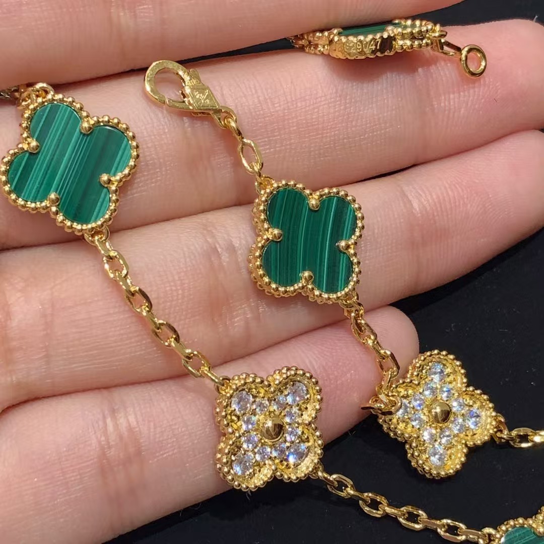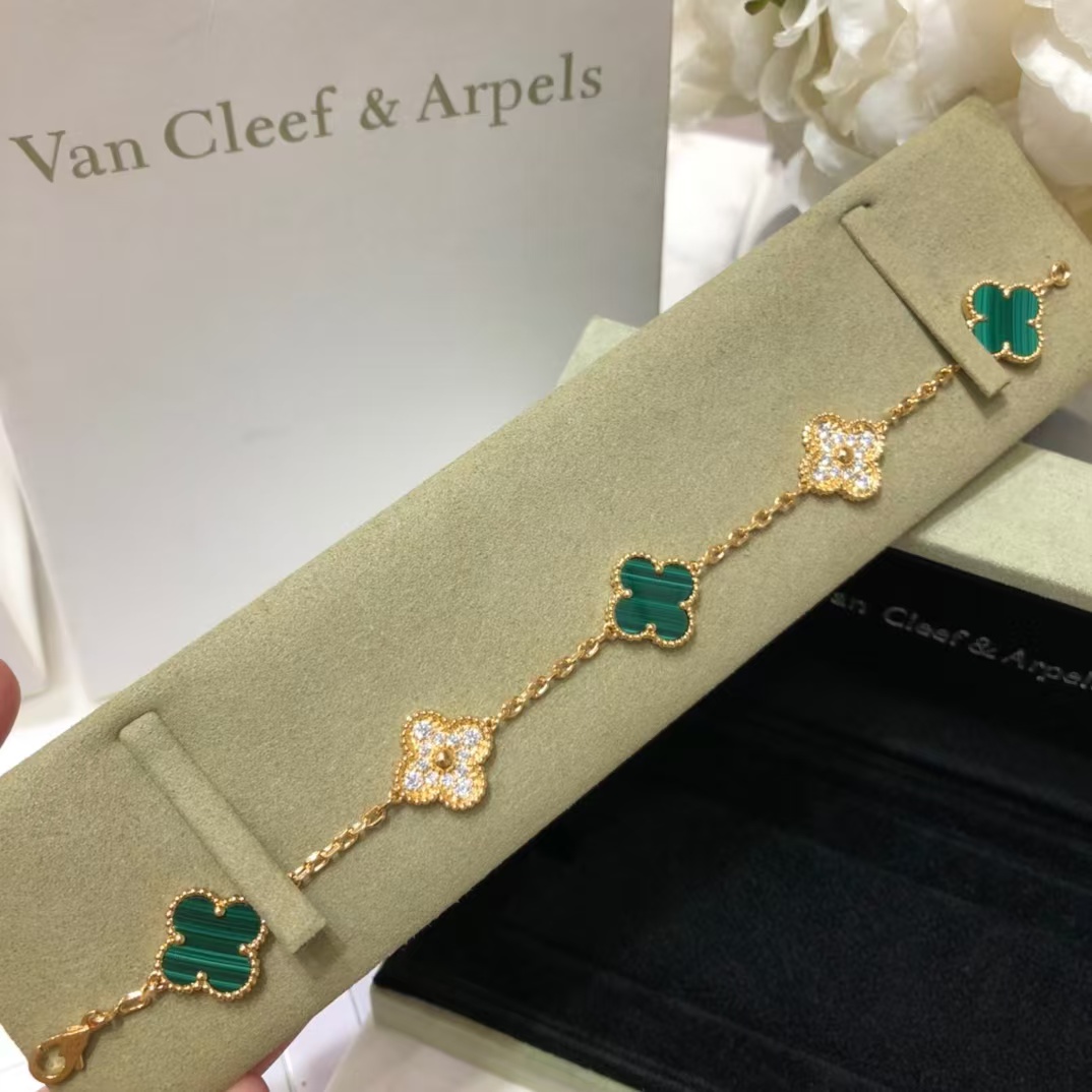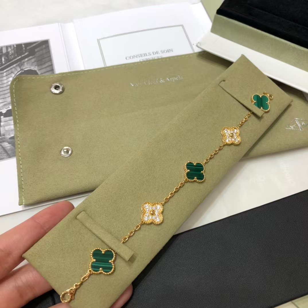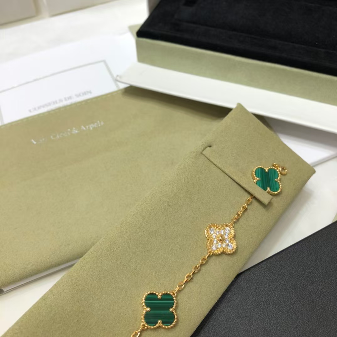 Van Cleef & Arpels White Gold Full Diamond Five Clover Bracelet 5 Motifs